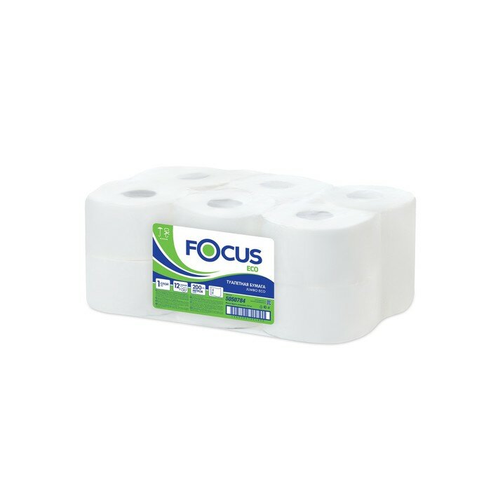 FOCUS бумага туалетная Jumbo EKO 200 м. 1 слой, белый. 12 шт. в упаковке