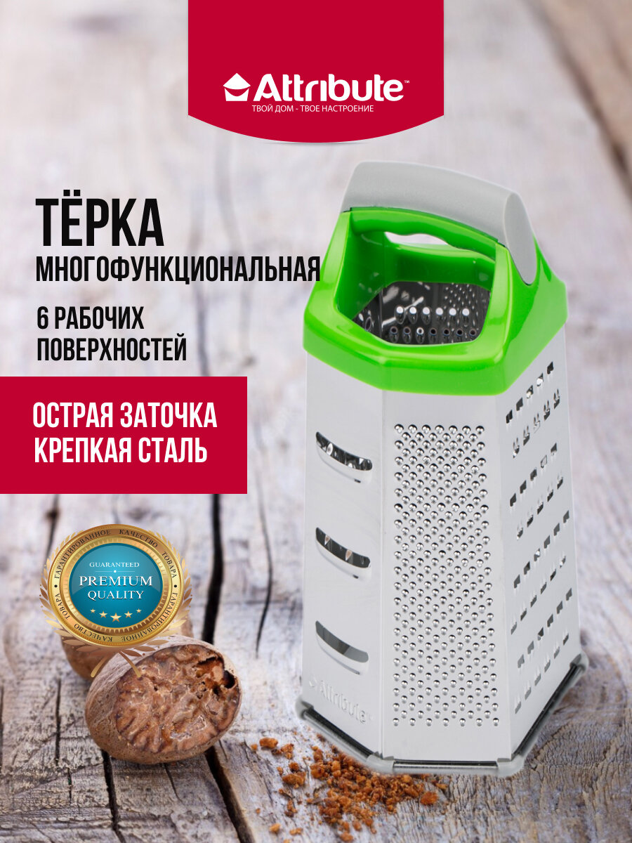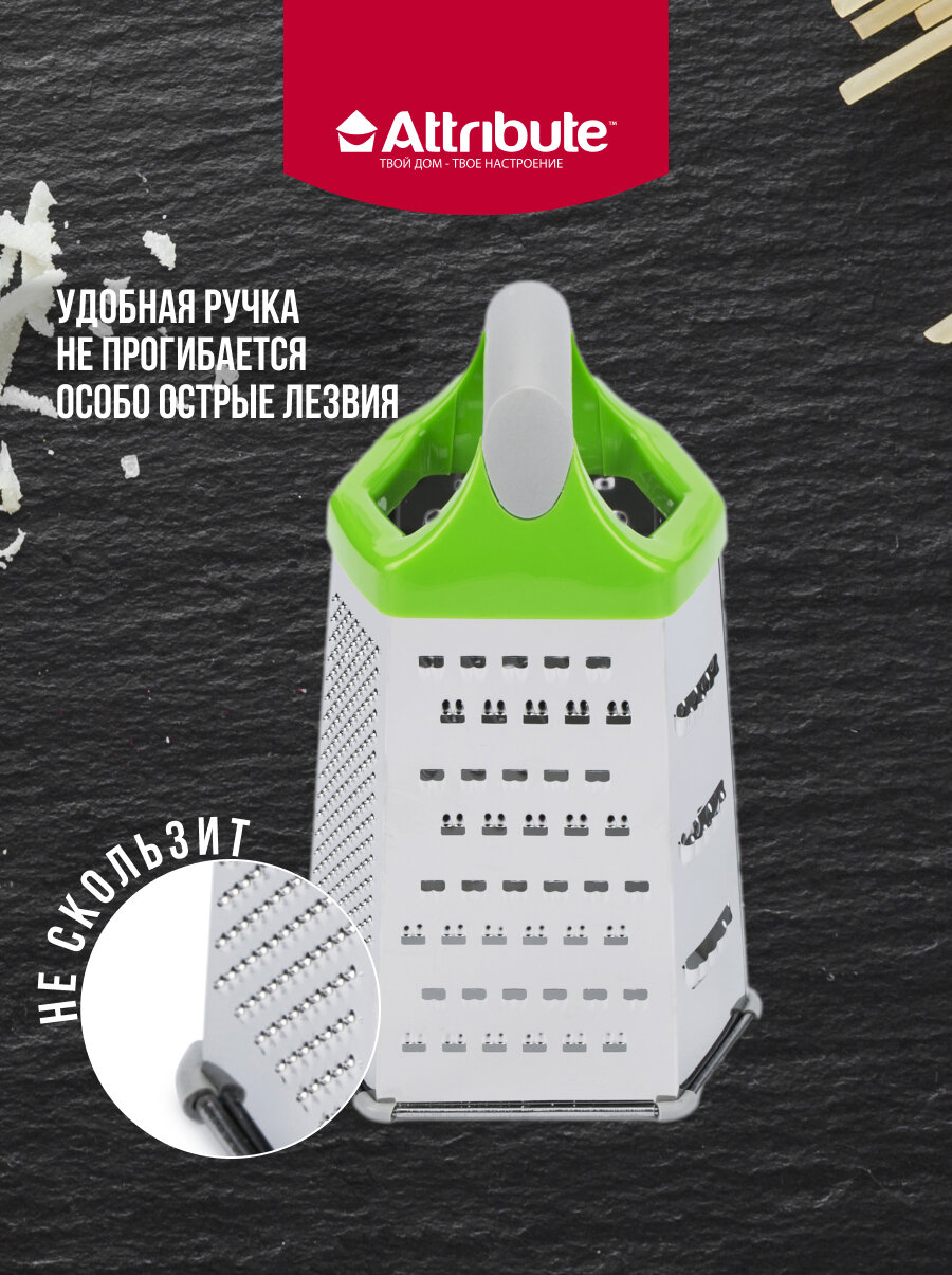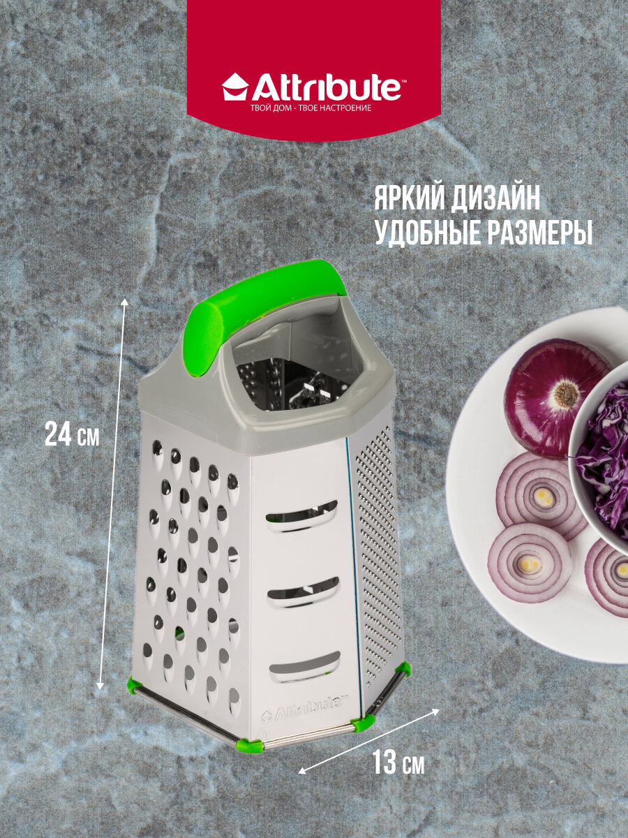 Терка ATTRIBUTE VIVA Grey Green 6-ти гранная универсальная без поддона нерж.сталь, пластик