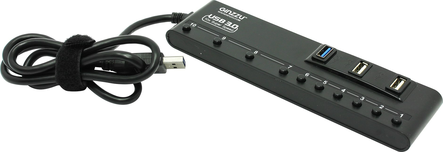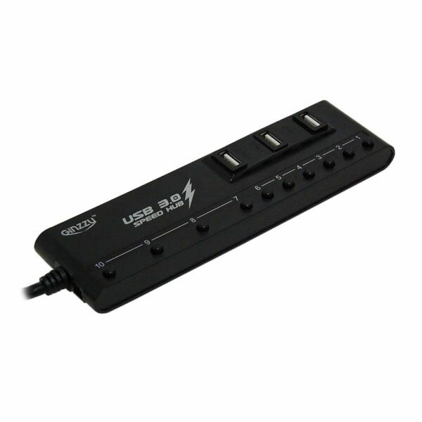 Разветвитель GINZZU USB GR-380UAB 10 портов (4xUSB 3.0 + 6xUSB 2.0 + адаптер) черный