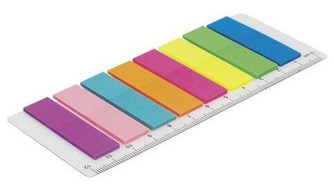Клейкие закладки Brauberg пластиковые 45*12 мм, 8 цветов по 25 листов, на пластиковой линейке 12 см