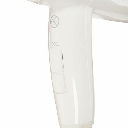 Фен Valera Hospitality Premium 1600 Push (533.05), мощность 1600 Вт, безопасная кнопка включения/выключения, регулировка температуры, спиральный сетевой шнур, холодный воздух, концентратор, белый