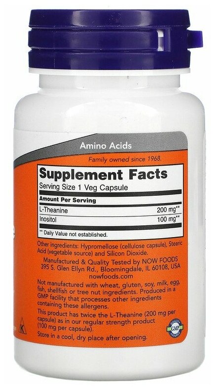 Купить NOW Theanine 200 мг (60 вегкапсул)