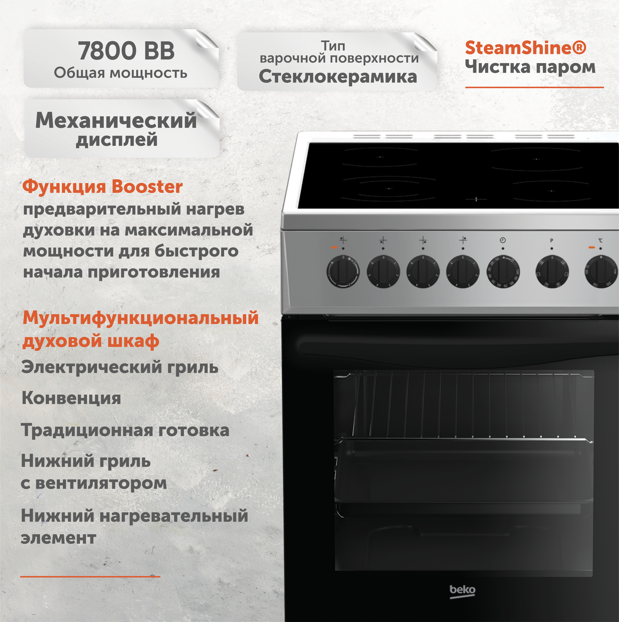 Электрическая плита BEKO FFSE 57114 GS 7786986786, серебристый