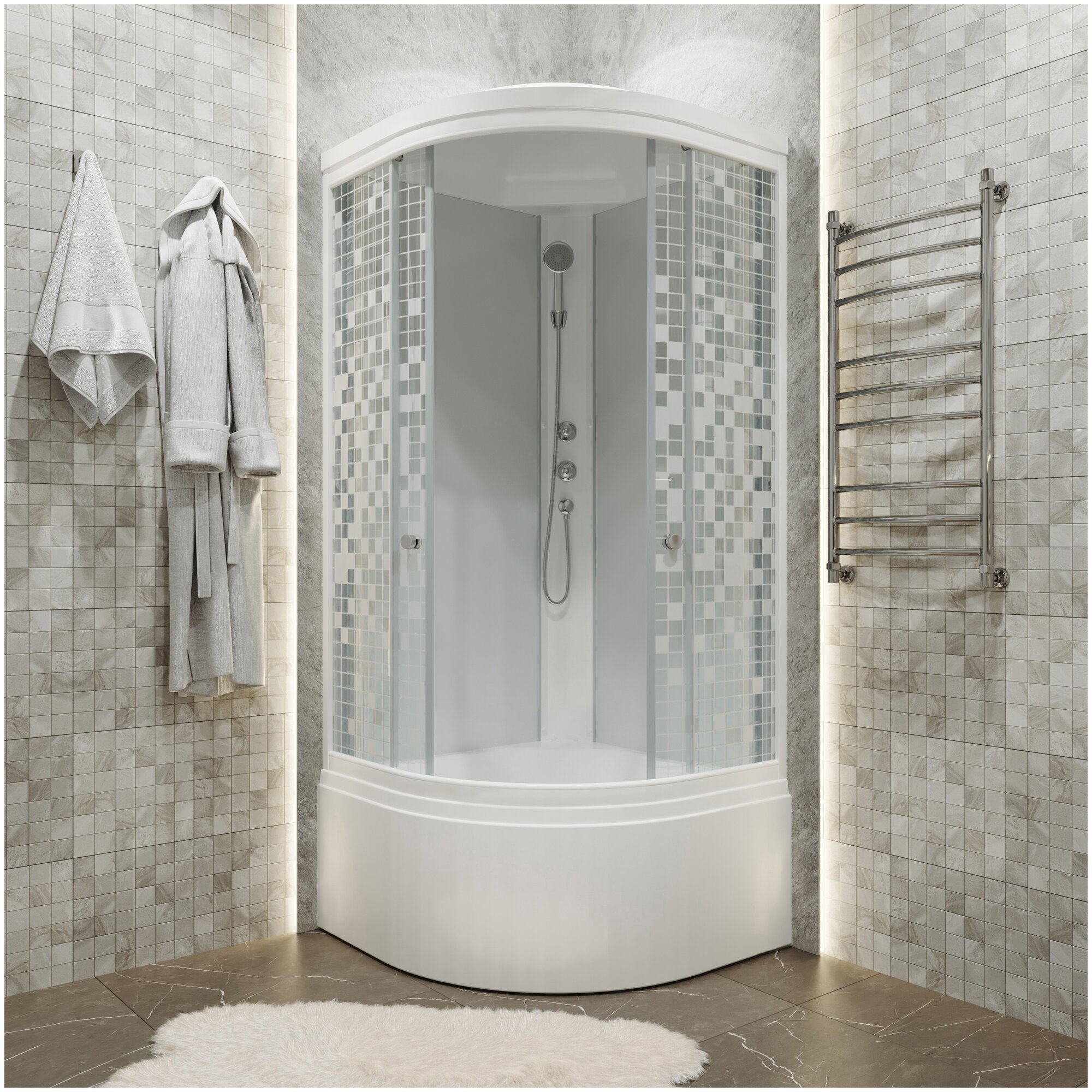 Душевая кабина TRITON Стандарт 90х90 Мозаика Б 1/4 круга высокий поддон 9 мест