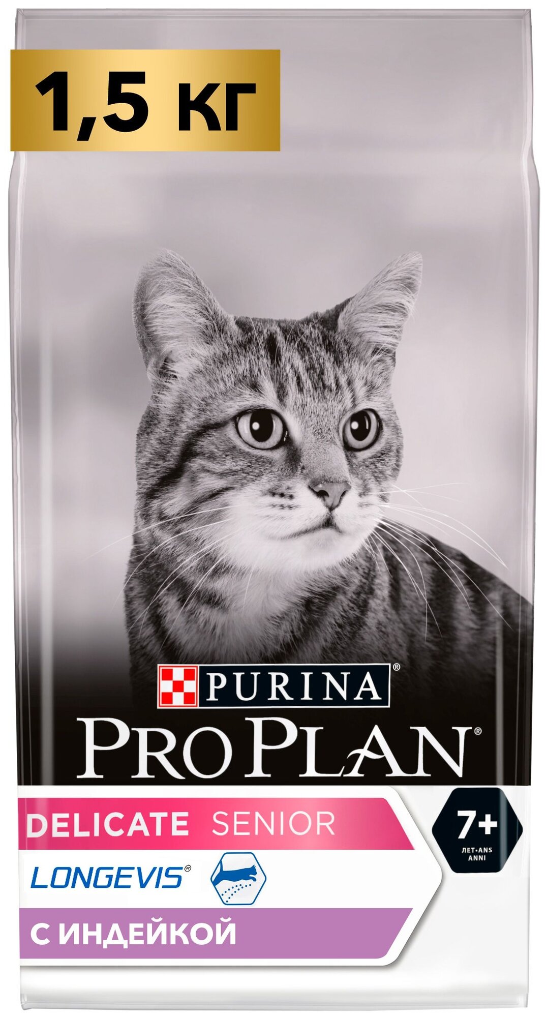 PRO PLAN CAT SENIOR 7+ DELICATE TURKEY для пожилых кошек старше 7 лет с чувствительным пищеварением с индейкой (1,5 кг)