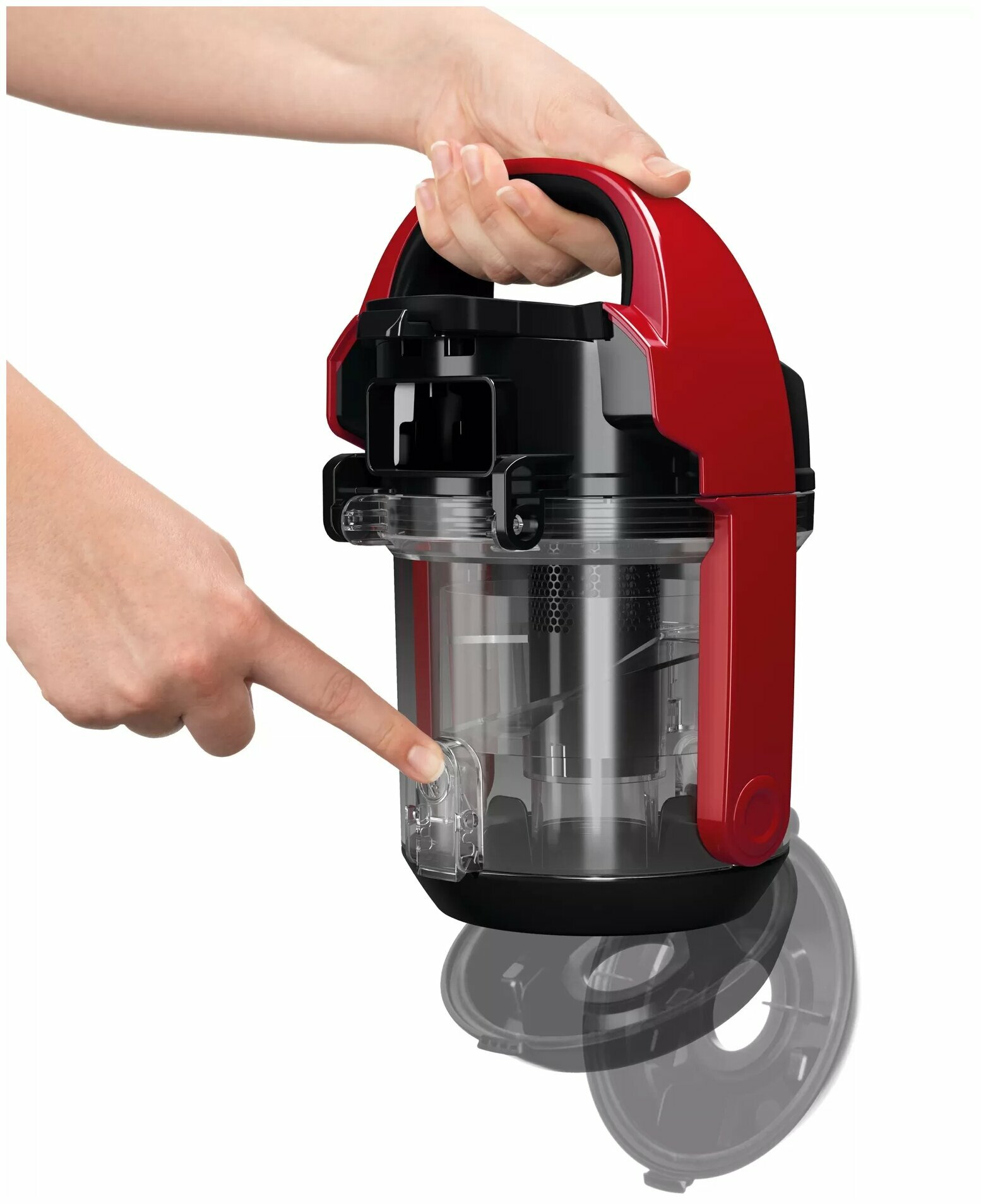 | Минусы: | Ручка для переноски, находящаяся на контейнере для сбора пыли. |