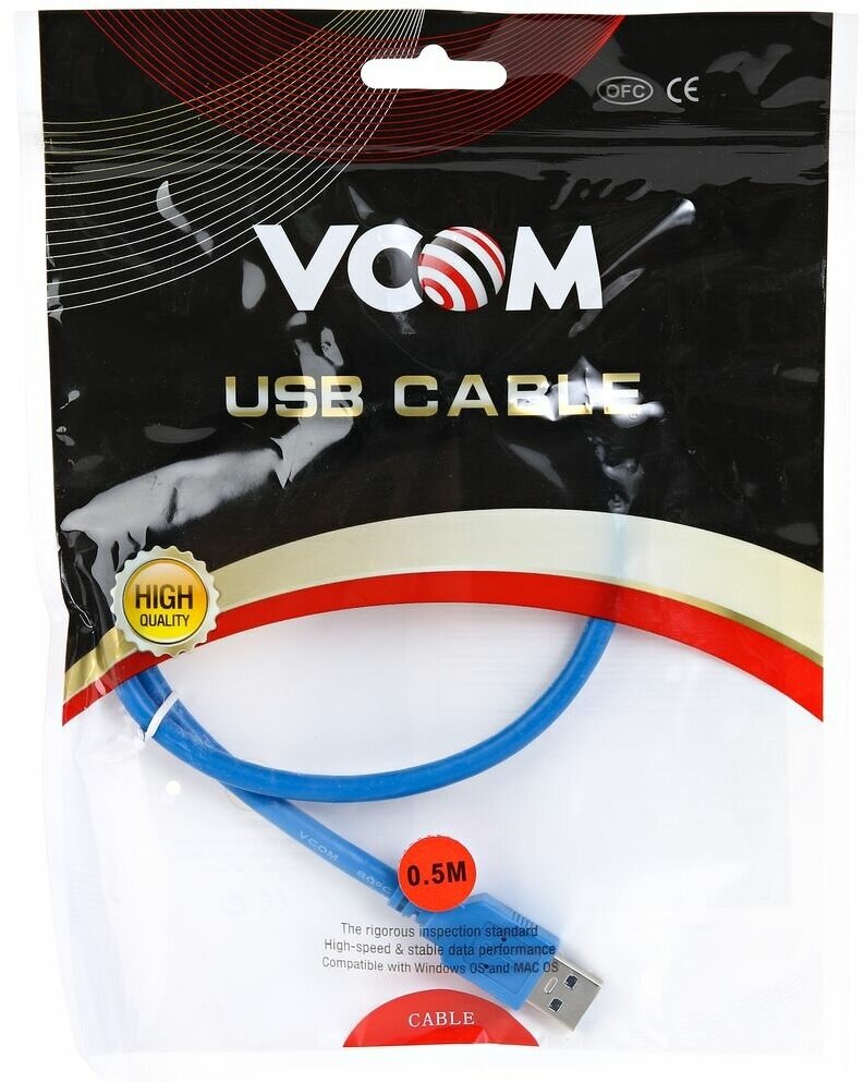 Кабель VCOM VUS7065, USB 3, для соединения устройств, удлинитель, ARC, синий
