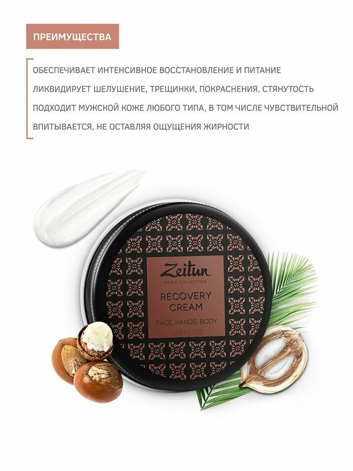 Крем для лица, рук и тела ZEITUN For Mеn Восстанавливающий, с маслом бабассу, 55 мл