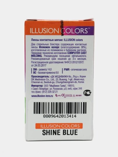 Купить ILLUSION цветные линзы Colors Shine (2 линзы) 8.6 -0.5 blue (голубой)