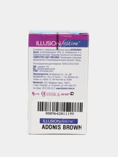 СохранитьILLUSION цветные линзы Fashion Adonise (2 линзы) 8.6 -2 brown (карий) интересное: