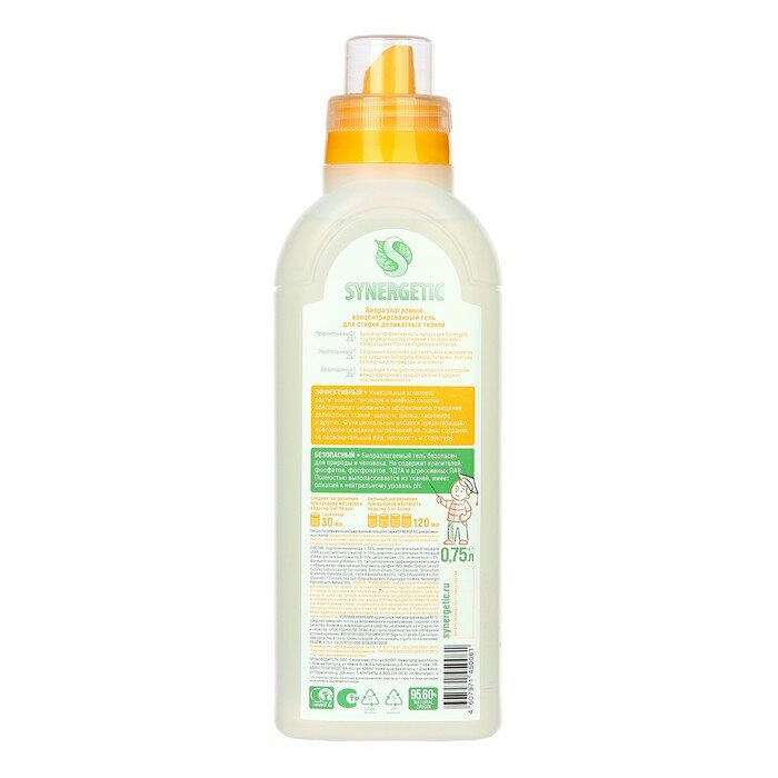 Гель для стирки Synergetic для деликатных тканей, 0.75 л, бутылка