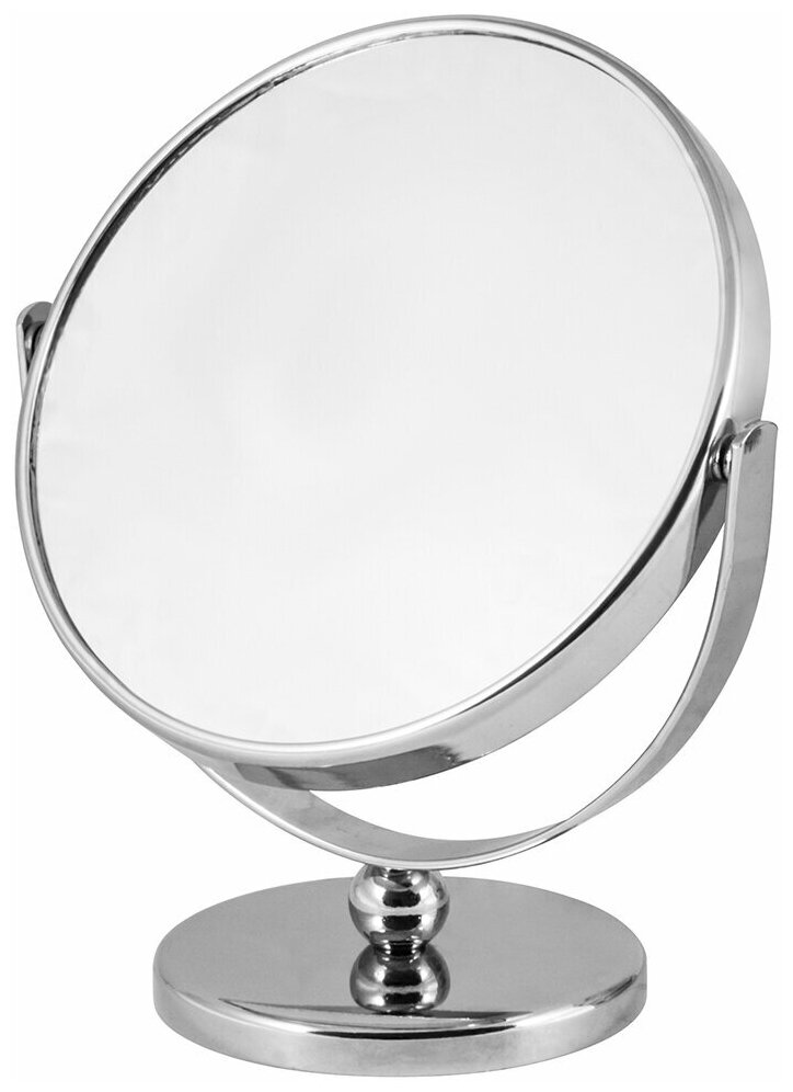 Купить Зеркало косметическое M-3135, двухстороннее на ножке (диам.12.5см, хром. металл, стекло)