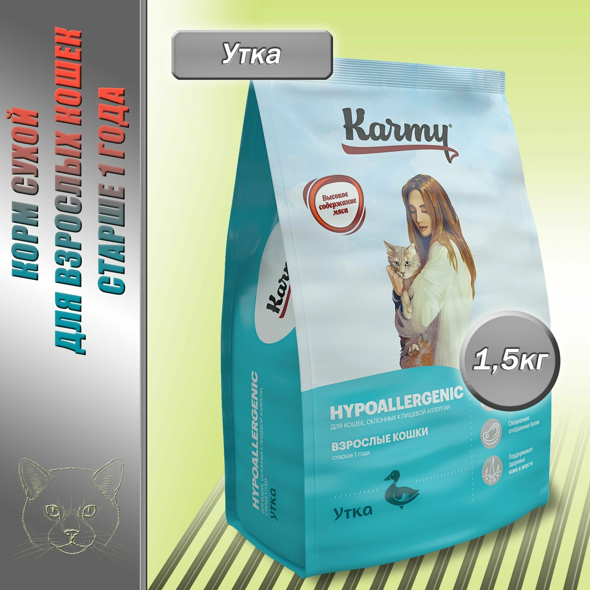 Сухой корм для кошек Karmy гипоаллергенный, с уткой 1.5 кг
