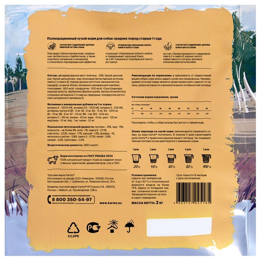 Сухой корм KARMY Medium Adult, для собак средних пород старше 1 года, Телятина, 2кг