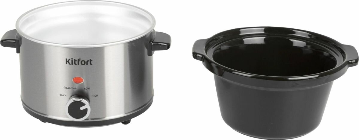 Медленноварка KITFORT КТ-206 2 л, 160 Вт, серебристый/черный