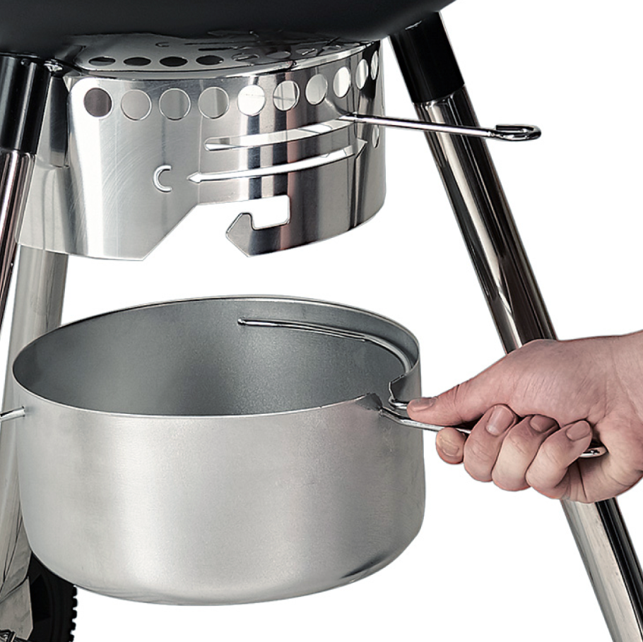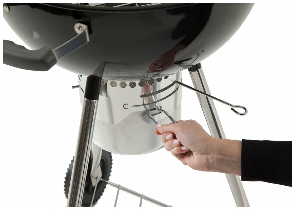 Немного хлипкая конструкция золоуловителя, который при готовки снимаю, иначе хуже держится температура. Возможно, дело в руках, т.к. опыта еще мало. Пробовали и жарить, и коптить - получается даже у нас, новичков. При покупке сразу берите любой стартер и удобные щипцы, чтобы готовка приносила только удовольствие. Решетка цельная и ручки для ее съема не удобны - чтобы добавить угля во время готовки, нужно немного изловчиться. |