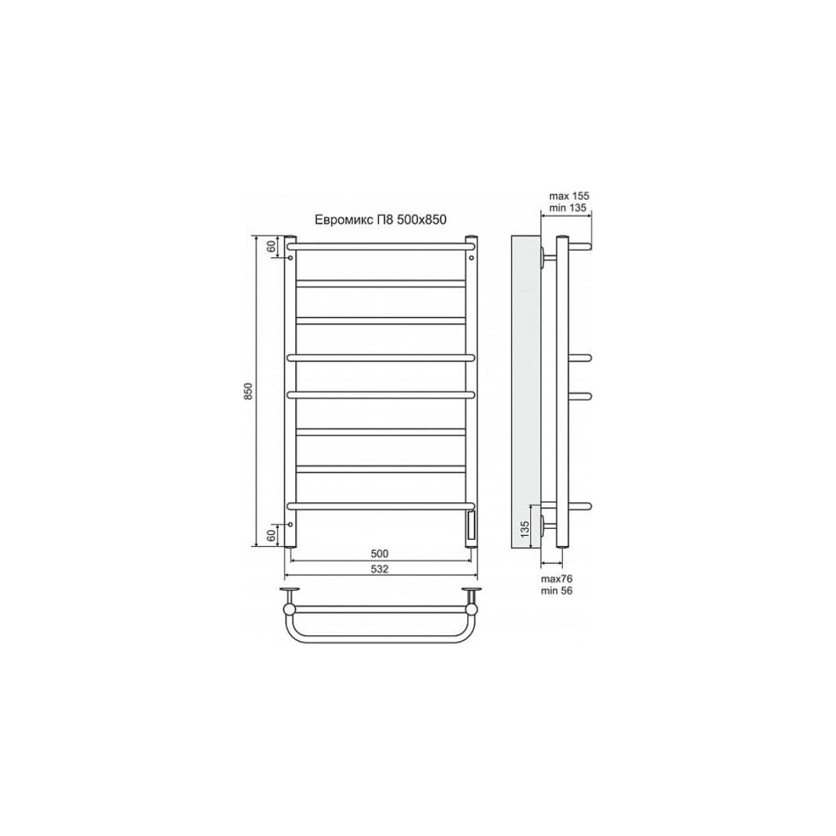 Электрический полотенцесушитель TERMINUS Евромикс П8 500x850 птэн хром 4660059580180