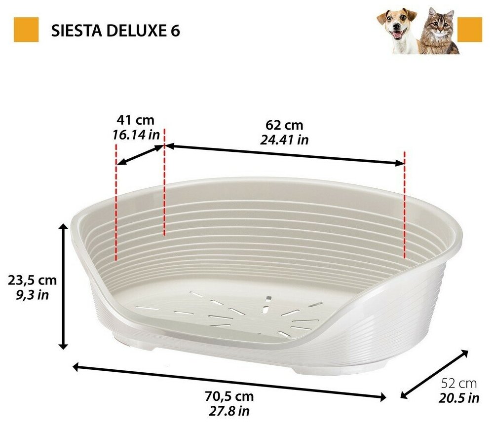 Лежак пластиковый для собак FERPLAST SIESTA DELUXE 6, 70,5 х 52 х 23,5 см (белый)