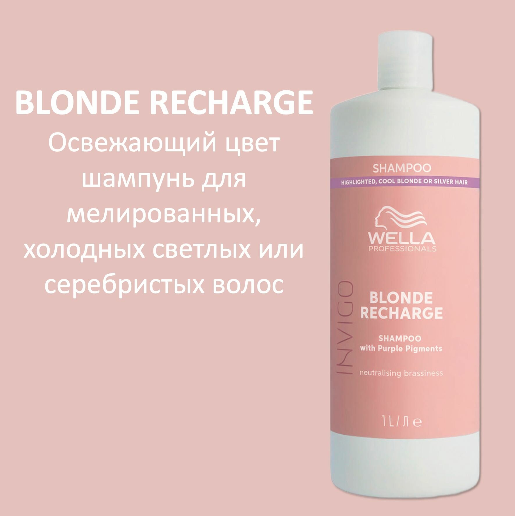 Wella Professionals Invigo Blonde Recharge - Велла Инвиго Блонд Речардж Шампунь-нейтрализатор желтизны для холодных светлых оттенков, 1000 мл -
