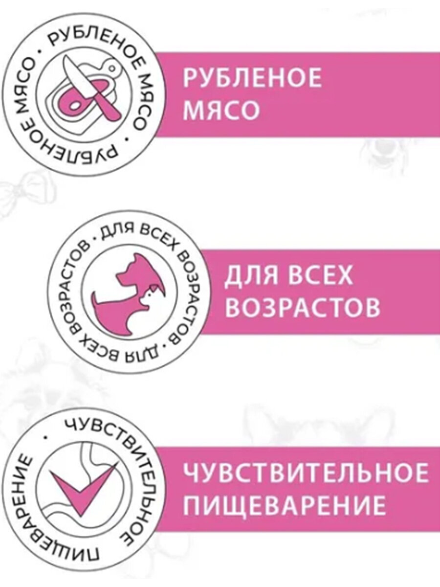 | Плюсы: | Подходит для чувствительного пищеварения, приятный запах, мясной состав |
