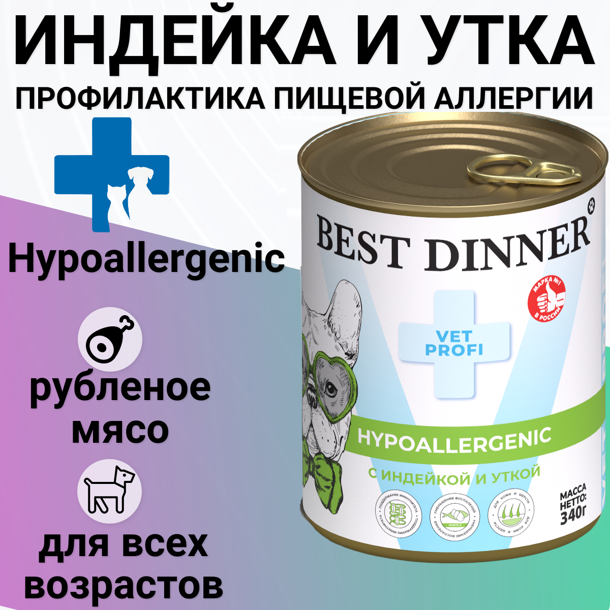 Купить Консервы для собак Best Dinner Exclusive Vet Profi Hypoallergenic С индейкой и уткой 0,34кг