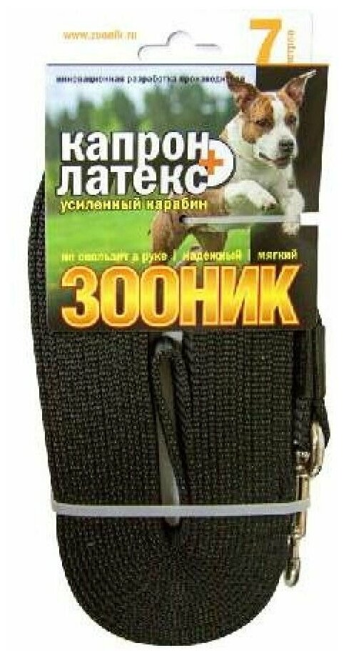 СохранитьПоводок для собак 25 мм Зооник капроновый с двойной латексной нитью и усиленным карабином черный 7 м (1 шт) интересное: