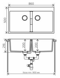 Кухонная мойка кварцевая с двумя чашами TOLERO Loft TL-862 черная (Уголь)