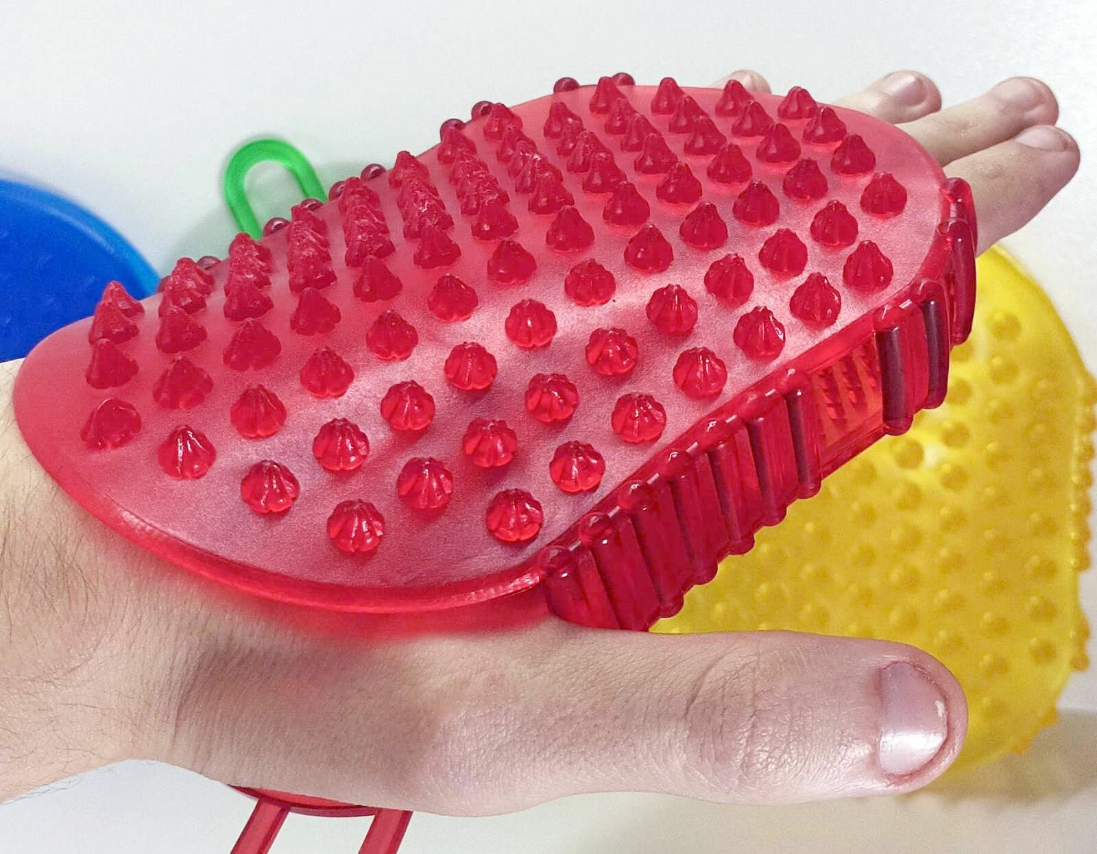 | Отзыв: | Надо приспосабливаться, чтобы щётка не соскальзывала с ладони. На боковой поверхности есть удобные отверстия и можно найти удобный способ расположения пальцев, чтобы надёжно удерживать массажёр. |