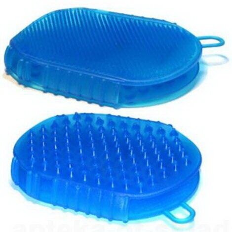 Чудо-варежка, массажер для тела. Имеет две разные поверхности. Более мелкие мягкие иголочки и более крупные пожестче. Активно рекламируется сейчас косметологами. Используется для антицеллюлитного массажа. Удобно применять в ванне с мылом и гелем для тела. Недостатки: Если честно, у меня до него руки не доходят. Раз попробовала и все. Особо не прониклась. Ну, не верю я в действие пупырчатого силикона. Висит в ванной на крючке. Если подумать, то почти все мочалки и щетки - тоже чудо-массажеры. Плюс еще и отмывают наше тело. |