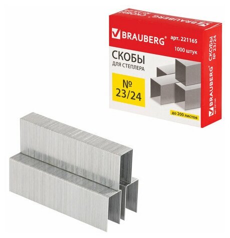 Скобы для степлера BRAUBERG, №23/24, 1000 штук, до 200 листов, 221165