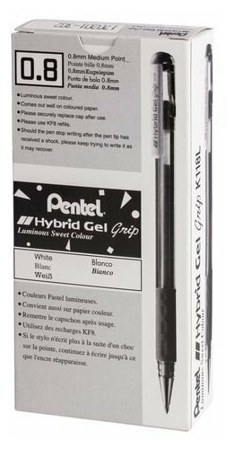 Pentel Ручка гелевая Hybrid gel Grip d 0.8 мм K118-LW белые чернила