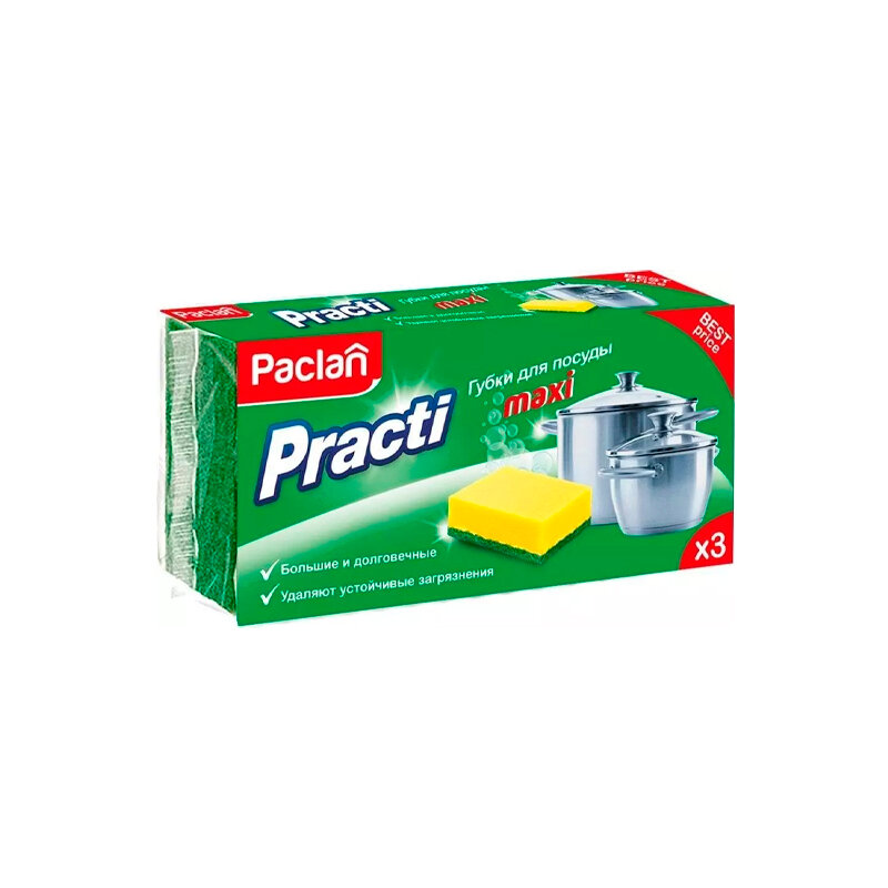Губки для посуды Paclan "Practi Maxi", поролон с абразивным слоем, 3шт. (арт. 239031)