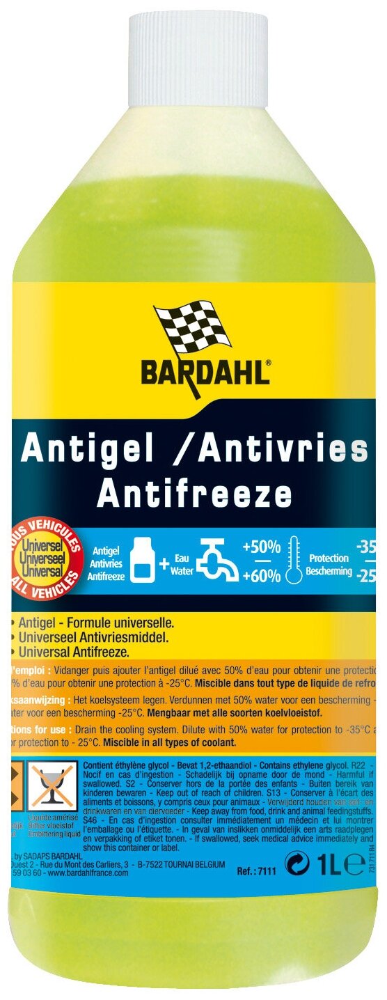 Antifreeze Bardahl universal yellow 1l 12 pz / антифриз универсальный Bardahl 7111