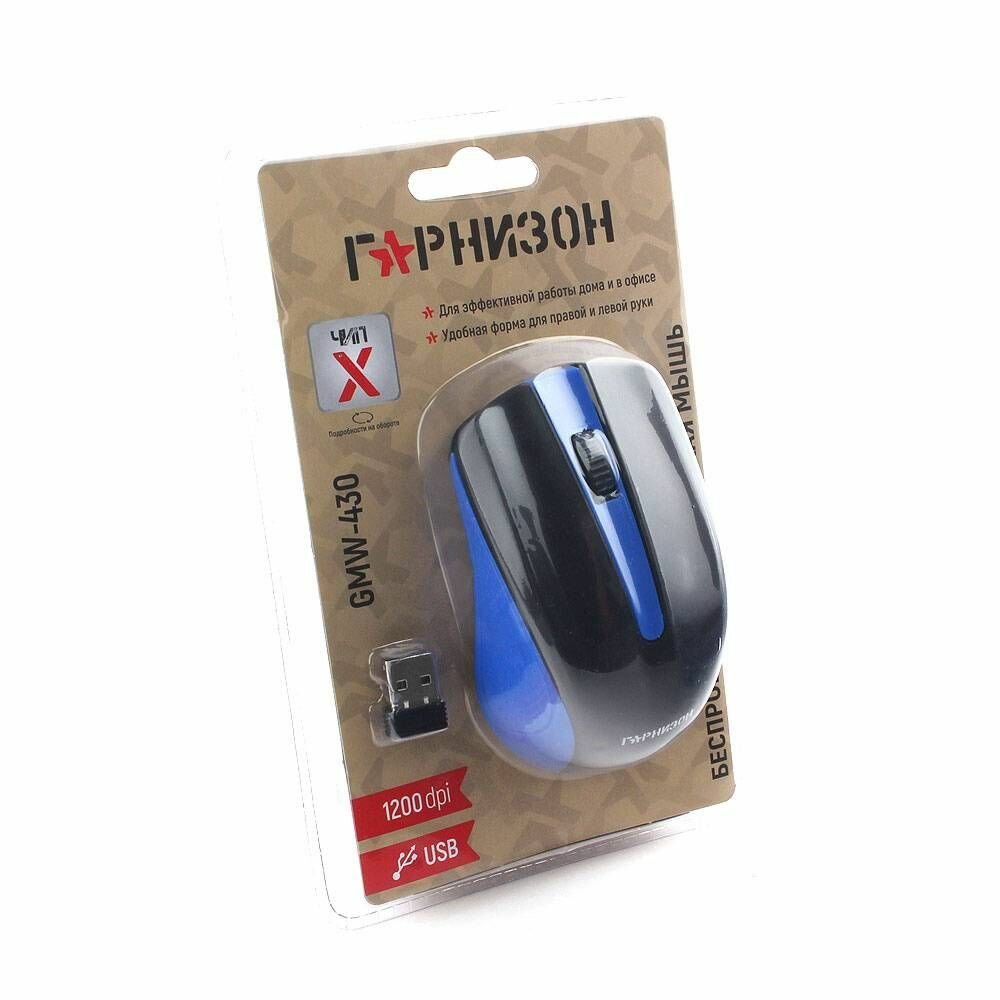 Мышь беспроводная Гарнизон GMW-430B, чип X, синий, 1200 DPI, 2 кн.+ колесо-кнопка, блистер