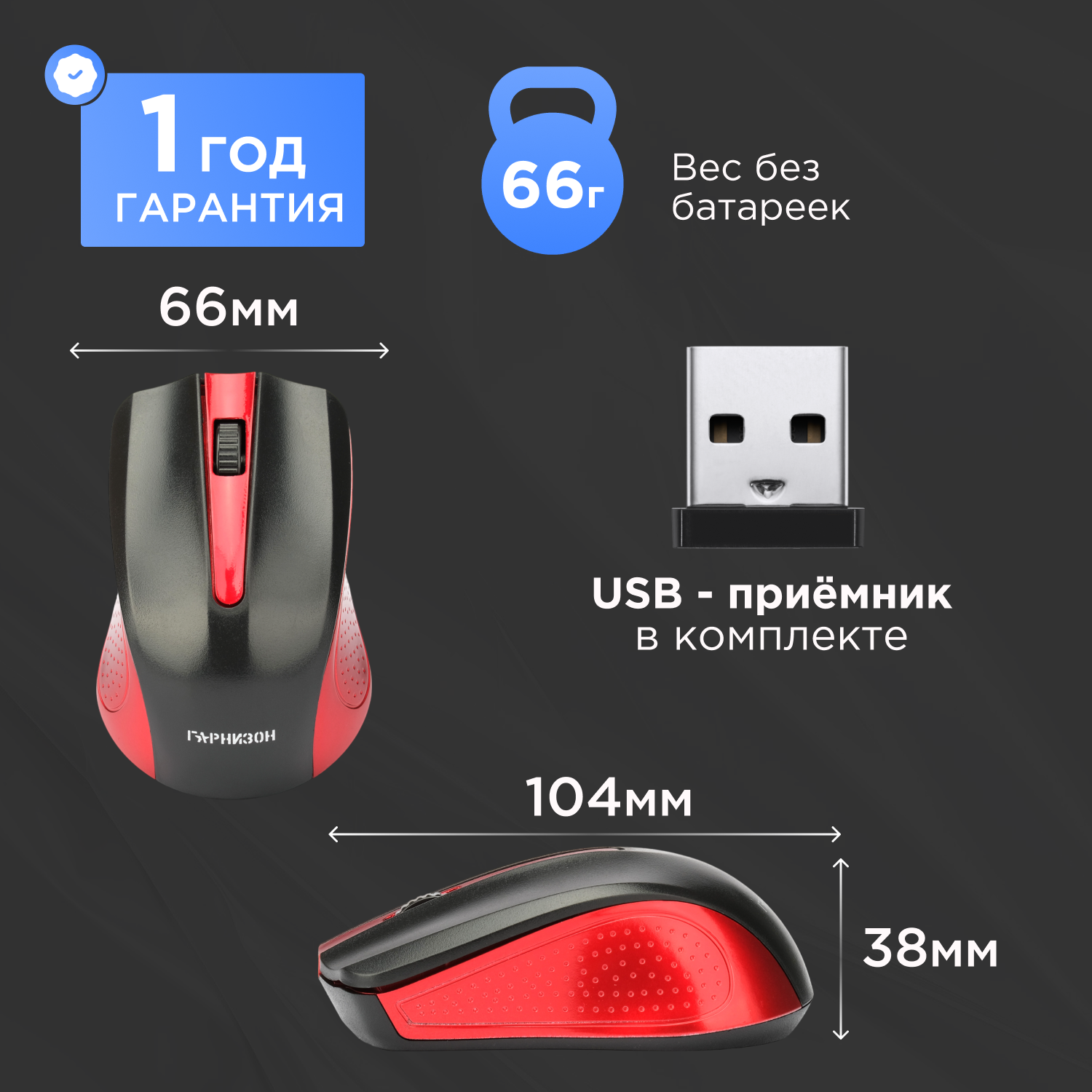 Комплект 2 штук, Мышь компьютерная Гарнизон GMW-430R, WLS, чип X, черн/красн, 1200dpi(15759)