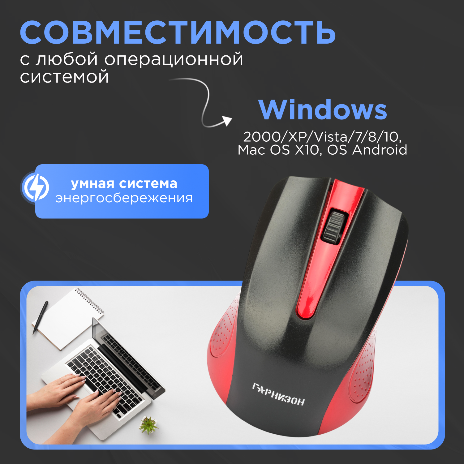 Мышь компьютерная Гарнизон GMW-430R, WLS, чип X, черн/красн, 1200dpi(15759)