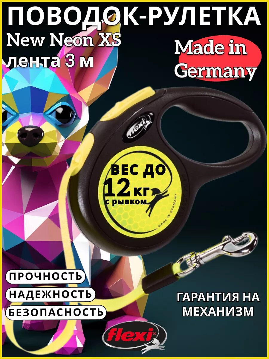 Купить FLEXI NEON TAPE ременной поводок рулетка для животных 3 м размер XS (1 шт)
