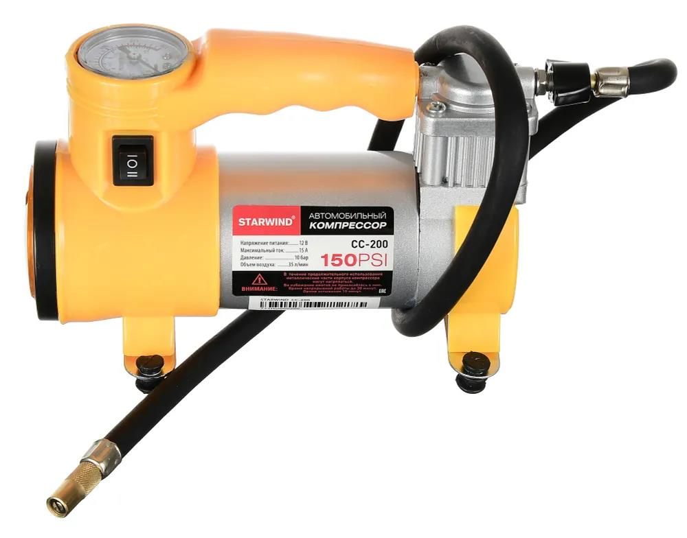 Автомобильный компрессор STARWIND CC-200, 12 В, желтый/серый