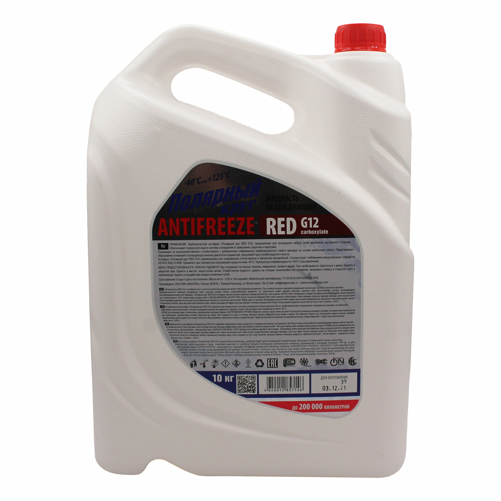 Полярный круг 176717 антифриз G12 ! 10kg, красный готовый -40°C\
