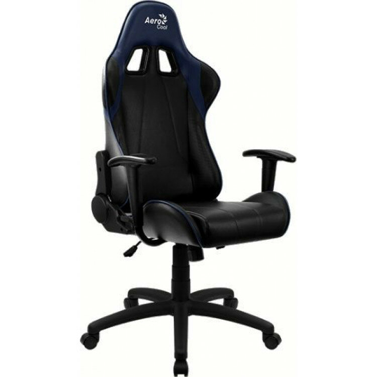 Купить Кресло игровое AEROCOOL AС100 AIR, на колесиках, ПВХ/полиуретан, черный/синий [aс100 black blue]