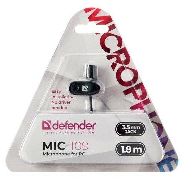 Микрофон DEFENDER MIC-109 черный, на прищепке, 1,8 м