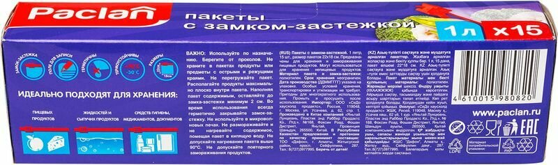 Ниже Вы можете прочитать отзывы на Paclan Пакеты c замком-застежкой 22 х 18 см, 1л, 15шт, ознакомится с подробными характеристиками, посмотреть интересные обзоры и фотографии на Paclan Пакеты c замком-застежкой 22 х 18 см, 1л, 15шт.