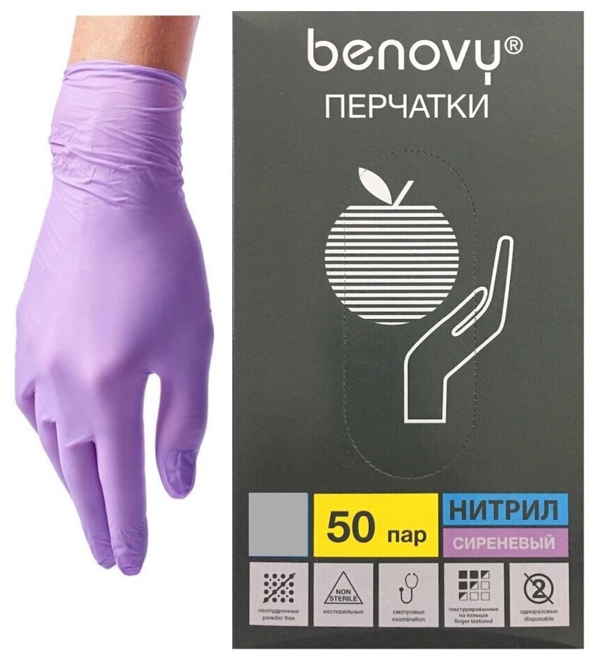 Ниже Вы можете прочитать отзывы на Перчатки нитриловые Benovy, M, сиреневые, 50 пар в упаковке, ознакомится с подробными характеристиками, посмотреть интересные обзоры и фотографии на Перчатки нитриловые Benovy, M, сиреневые, 50 пар в упаковке.
