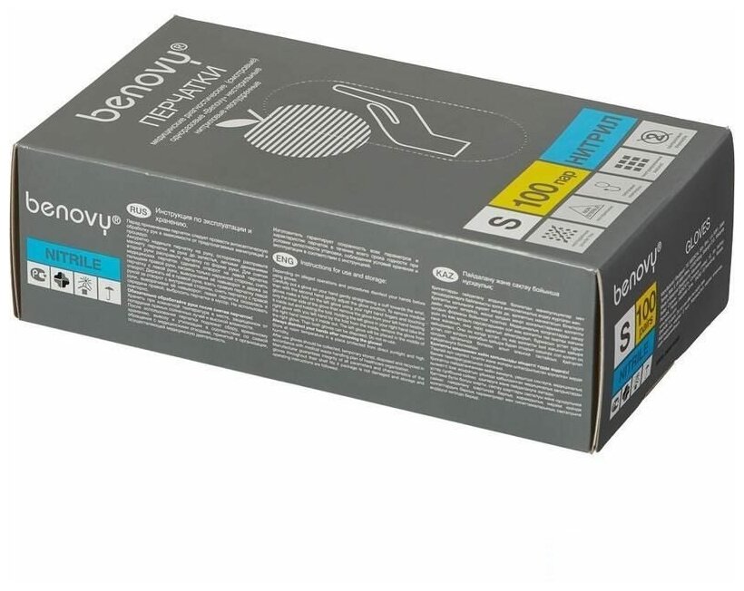 Перчатки Benovy нитриловые медицинские голубые 3 гр S 100 пар(100 шт.)