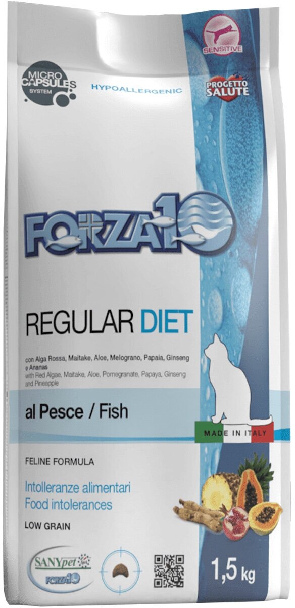 Forza10 Regular Diet сухой корм для взрослых кошек при аллергии и повышенной чувствительности к животным белкам с рыбой - 1,5 кг