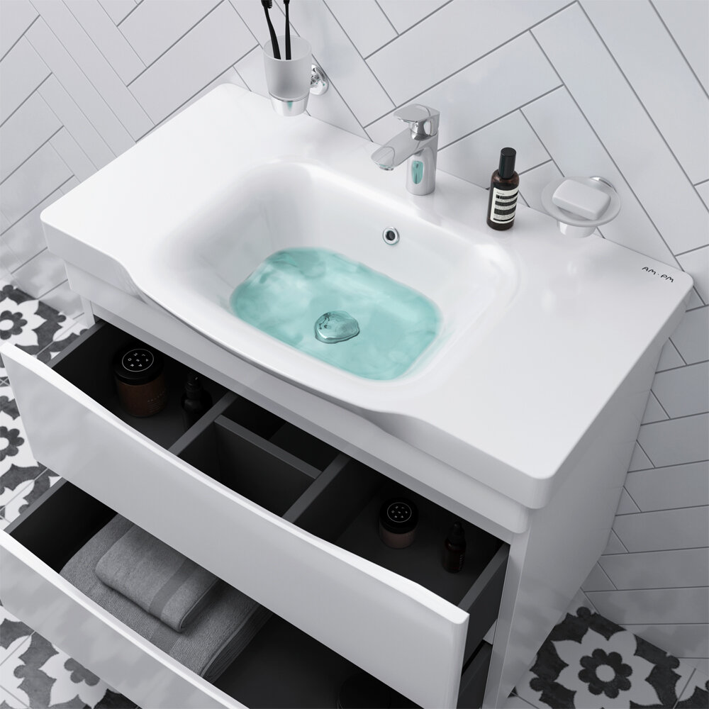 Тумба под раковину AM.PM Like M80FHX0802WG подвесная, 80 см, 2 ящика, белый глянец