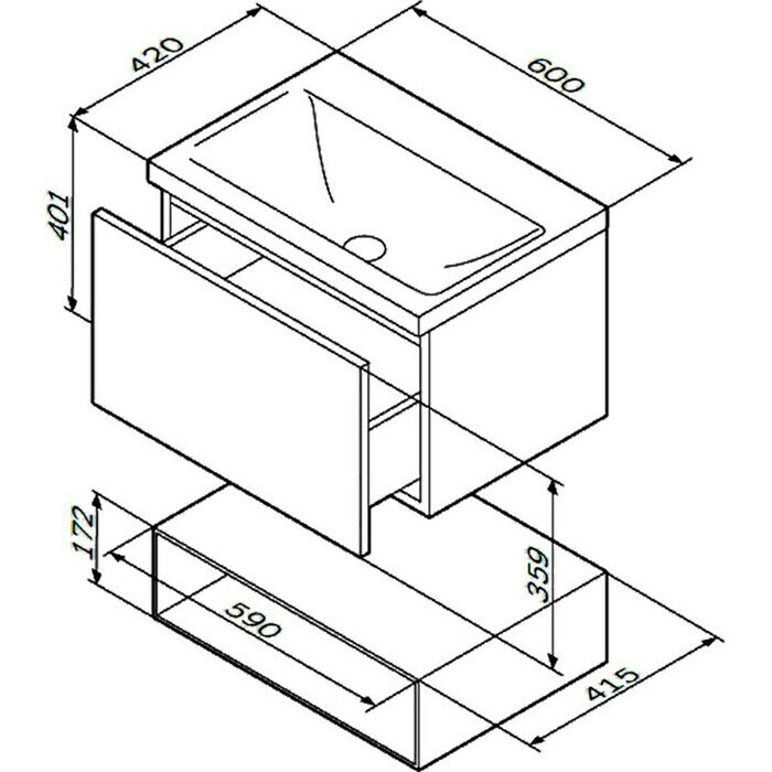 База под раковину подвесная Am.Pm Gem M90FHX06021WG (1 ящик, 60 см, белый глянец)