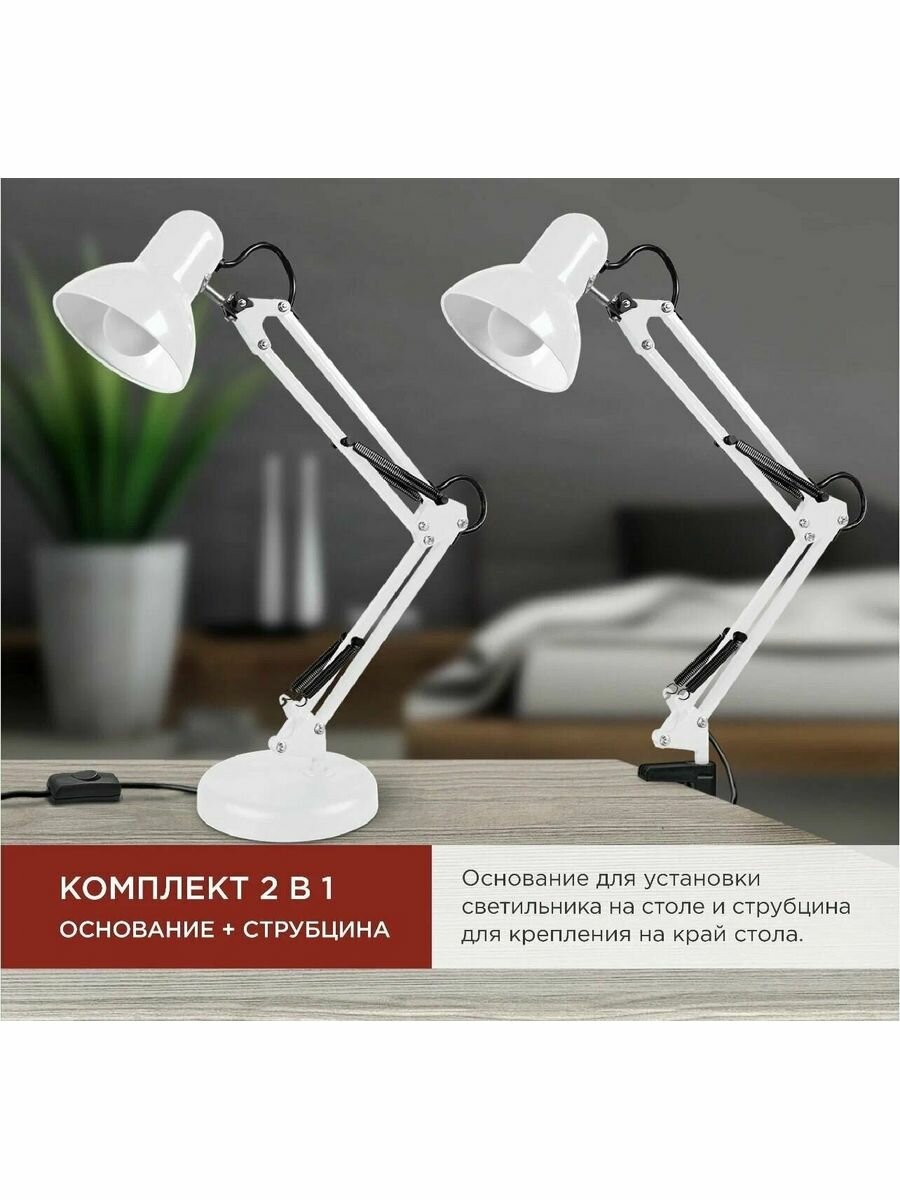 Светильник настольный под лампу на основании + струбцина СНО 15Б-E27 230В белый IN HOME