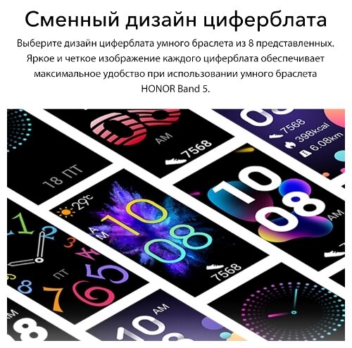 Фитнес-трекер HONOR Band 5 (Ростест, Официальная гарантия), черный метеорит