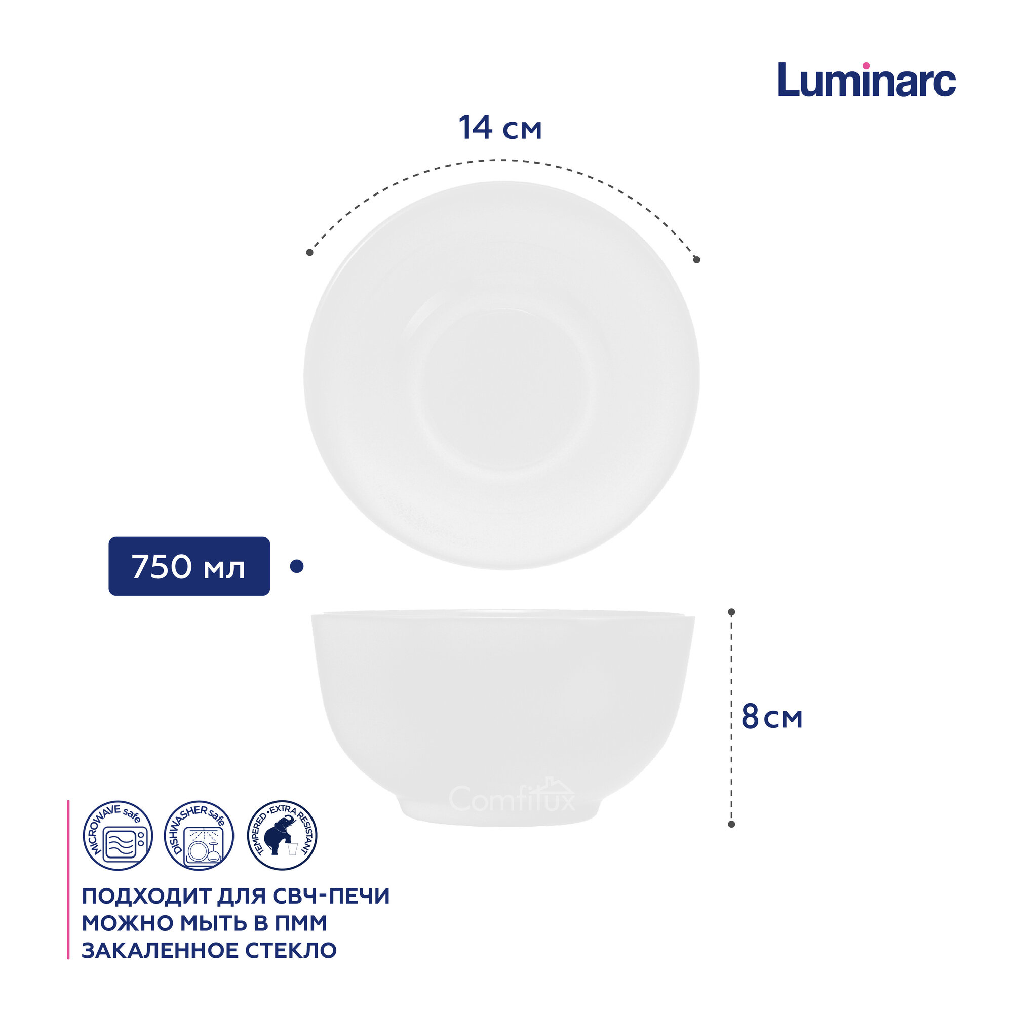 Luminarc Салатник Diwali, 12 см, 0.4 л, 1 шт., белый